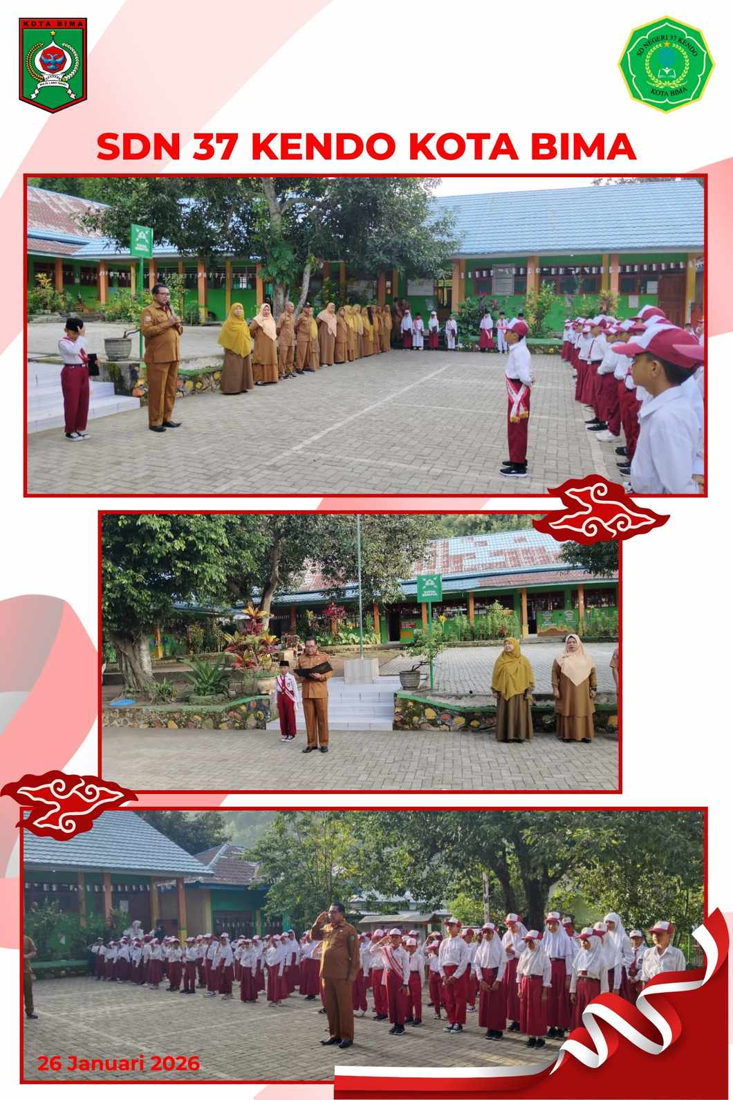 Sangat Khidmat! Pengawas Pembina Pimpin Upacara Bendera di SDN 37 Kendo Kota Bima